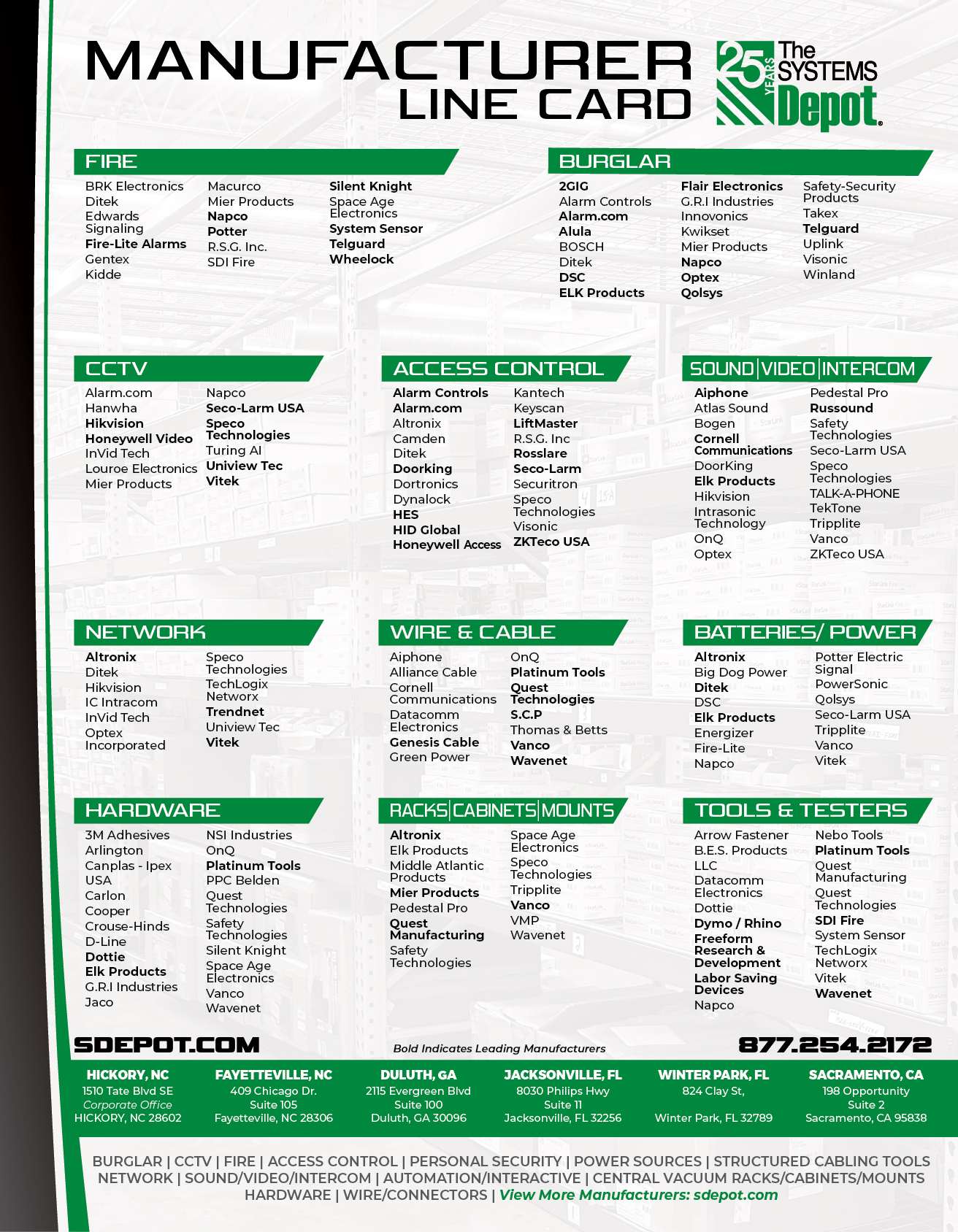 Manufacturer Line Card